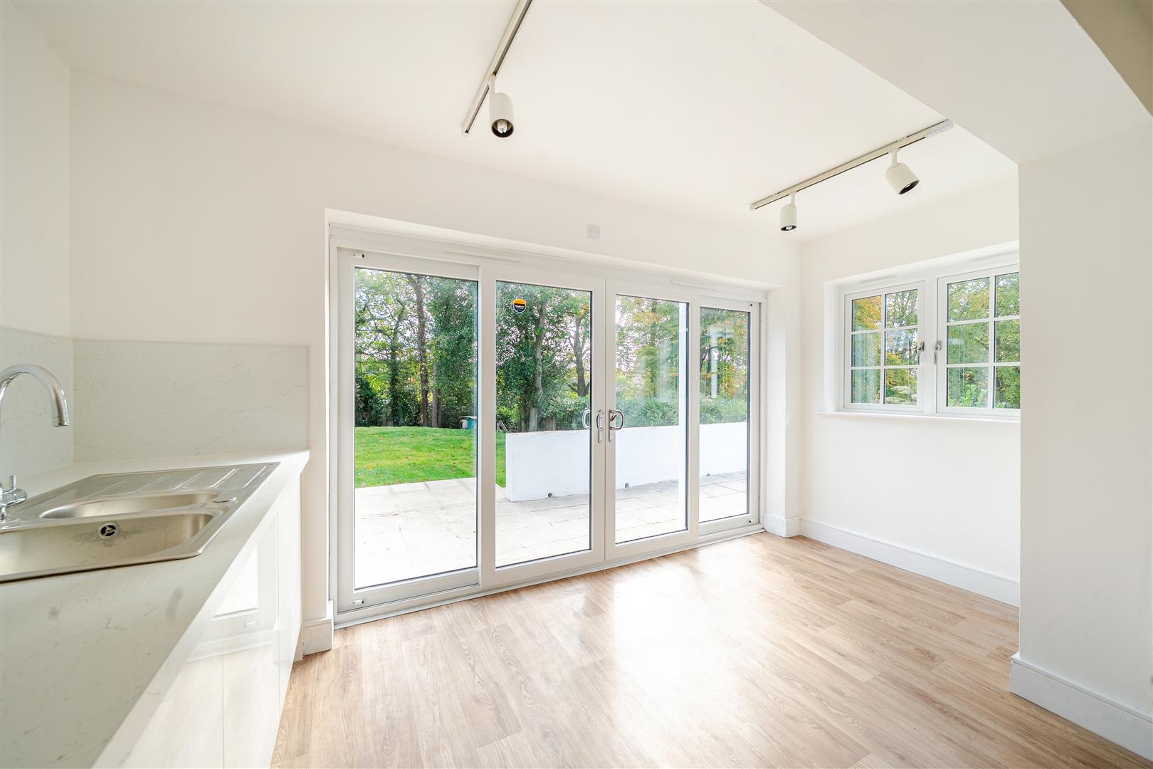 The accommodation is bright and well-planned. A welcoming entrance hall leads into a spacious living room, featuring dual-aspect windows and sliding doors opening onto the rear patio — flooding the room with natural light and providing an ideal setting for relaxing or entertaining. The contemporary kitchen/dining room is beautifully appointed, offering ample storage and workspace, with plenty of room for family dining while enjoying views over the gardens. There are three generous bedrooms, including a large principal bedroom, all served by a refitted family bathroom finished to a high standard. Every detail has been thoughtfully considered to create a harmonious and comfortable home.