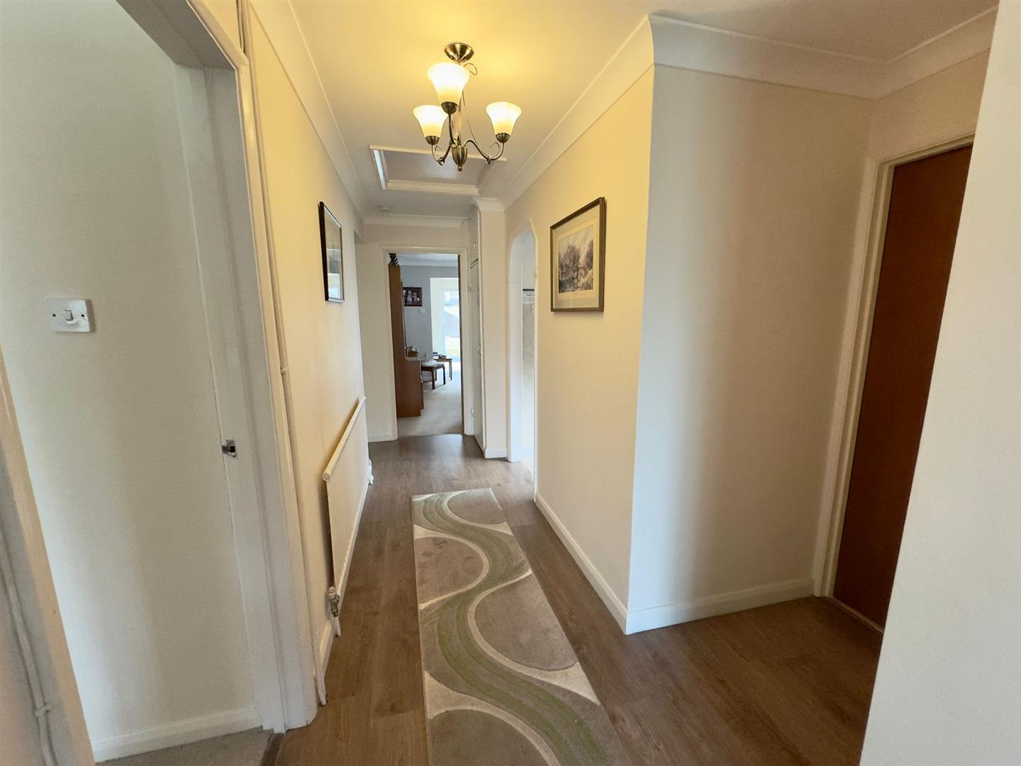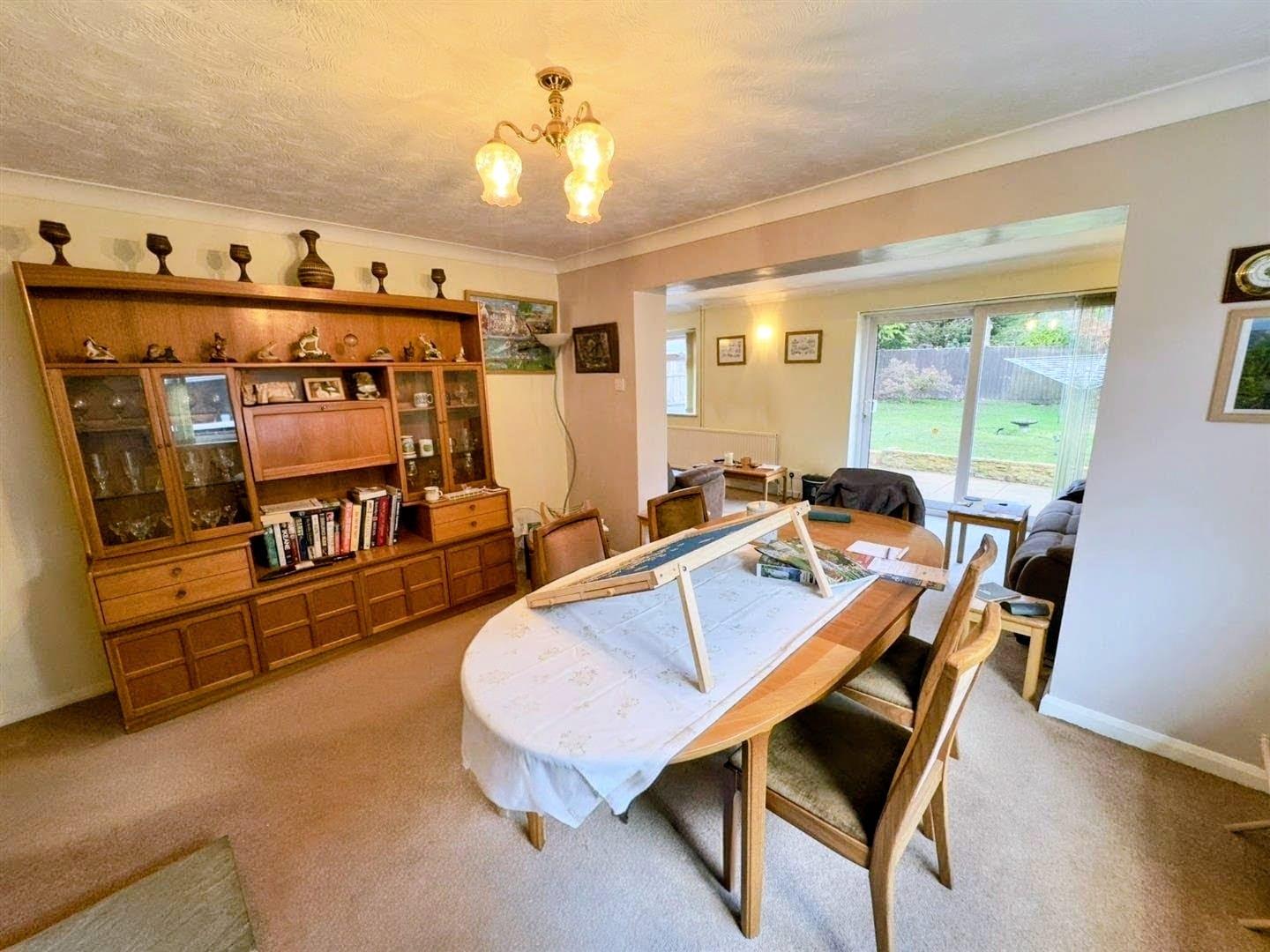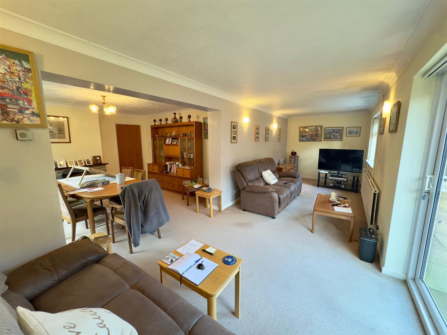 The bungalow is presented in good condition throughout and offers well-balanced accommodation extending to approximately 1,243 sq ft. Internally, the property features a welcoming entrance hall, a large and bright L-shaped living and dining room with sliding doors opening directly onto the rear garden, and a well-proportioned kitchen with adjoining storage and airing cupboard. There are three comfortable double bedrooms, all of good size, together with a family bathroom and a separate WC, creating a practical and flexible layout well suited to a variety of lifestyles.