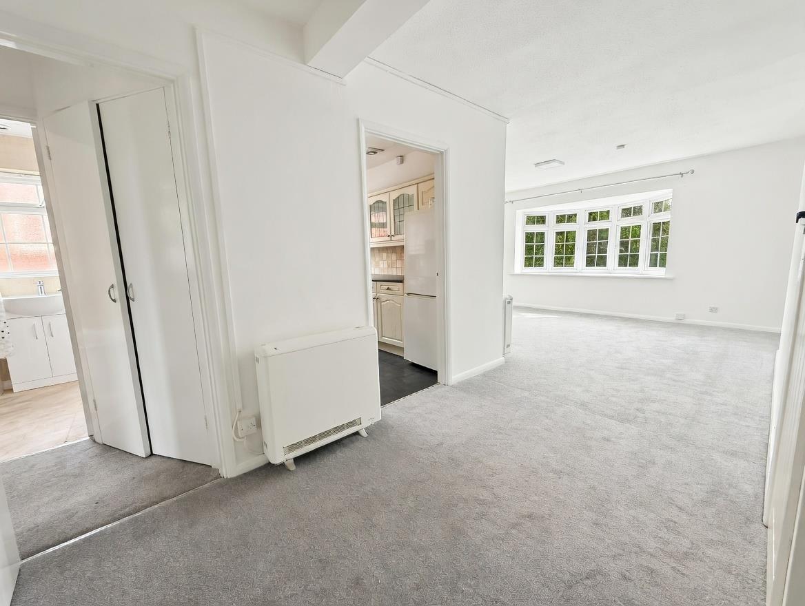 The property has been recently refreshed throughout, benefiting from fresh decoration and brand-new carpets, creating a bright and welcoming living environment ready for immediate occupation. The spacious living room is a particular feature of the apartment, boasting an attractive bay window which allows plenty of natural light to flood the room and enhances the sense of space.