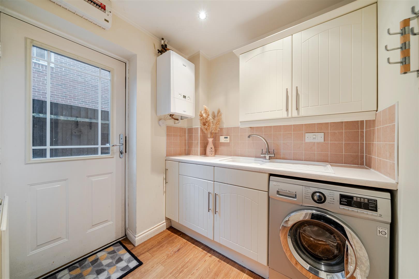 Offering a good degree of privacy and access to the double garage and driveway. This low maintenance garden offer a good sized patio and shingle areas with pergola and enclose by wood panelled fencing.