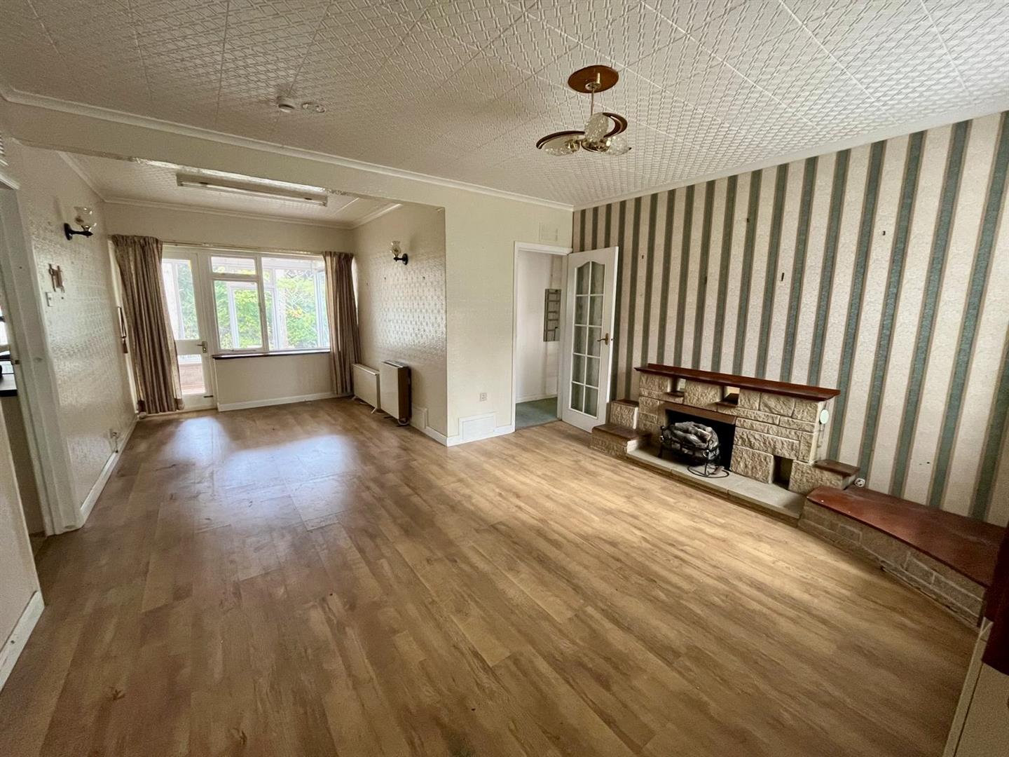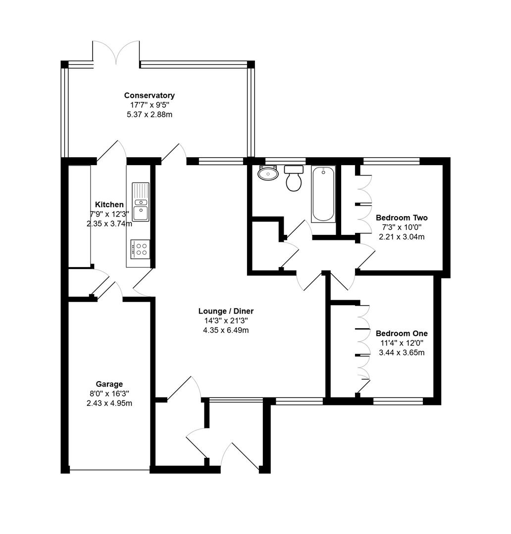 The accommodation comprises a welcoming porch and separate entrance hall, a living/dining room with a feature fireplace, a well-equipped fitted kitchen, and a spacious conservatory opening onto the rear garden. The property further benefits from two double bedrooms with fitted wardrobes and a family bathroom.