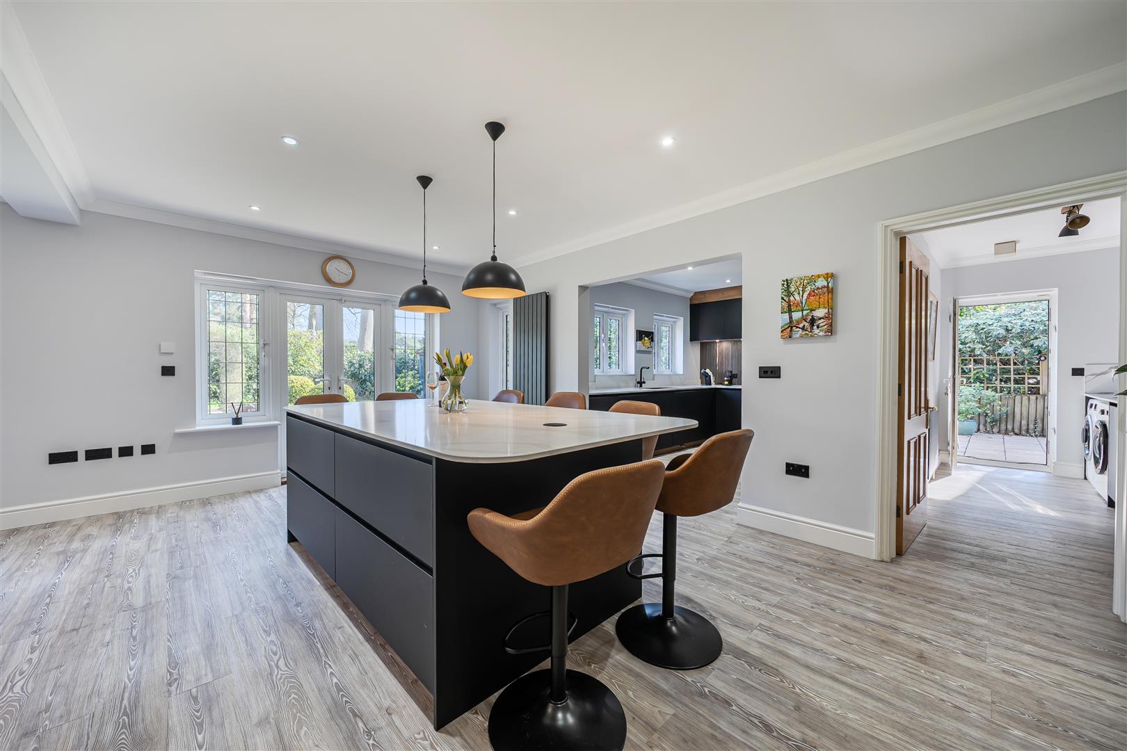 Originally constructed by Berkeley Homes in 2002, this impressive home is located in a private road adjacent to Camberley Heath Golf Club. The entrance hall opens to the dual aspect living room with a feature open fireplace and has French doors to the garden, the two further reception rooms are of generous proportions, with the rear aspect sitting room overlooking the garden and open plan to the impressive and refitted Schmidt kitchen. The kitchen/breakfast benefits from a large central island unit and an excellent range of kitchen cabinets complemented by stylish quartz worksurfaces and a range of integrated appliances. Adjacent is the utility room giving access to the garden and garage. Upstairs, the galleried landing leads to 5 well proportioned bedrooms served by two ensuite bathrooms and a family bathroom.