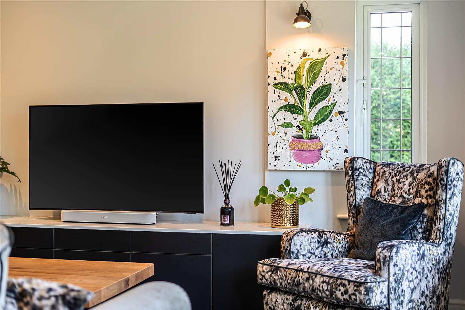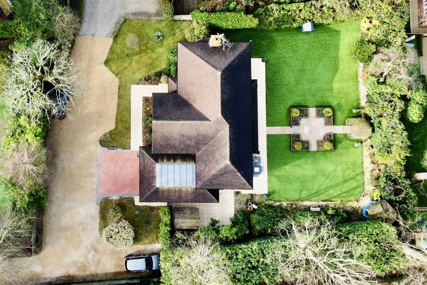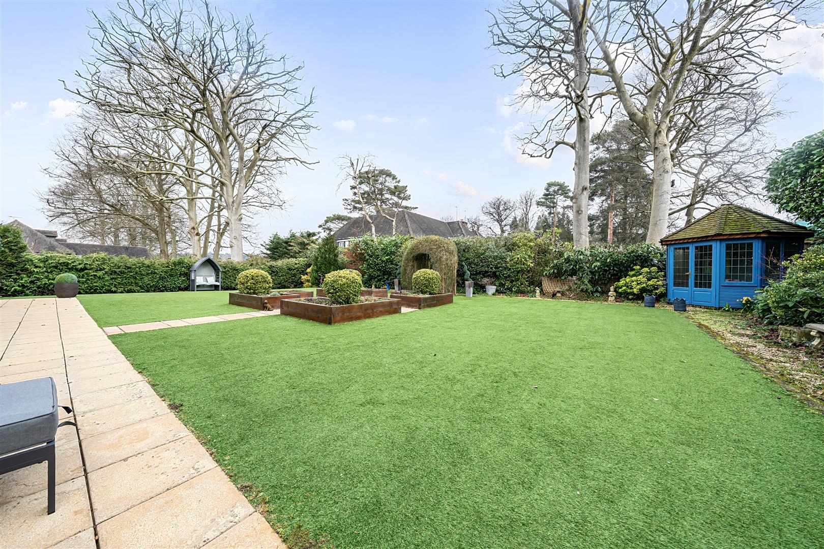 The property is approached by a private shingled driveway with a turning point and brick pavia driveway that leads to the double garage. A pathway leads to the front door and a timber gate to the rear garden. The rear garden has a full width patio leading to a level lawn and enclosed by evergreen planting and provides a secluded outlook. The gardens are low maintenance with artificial lawn with a central feature, summer house and timber garden store.
