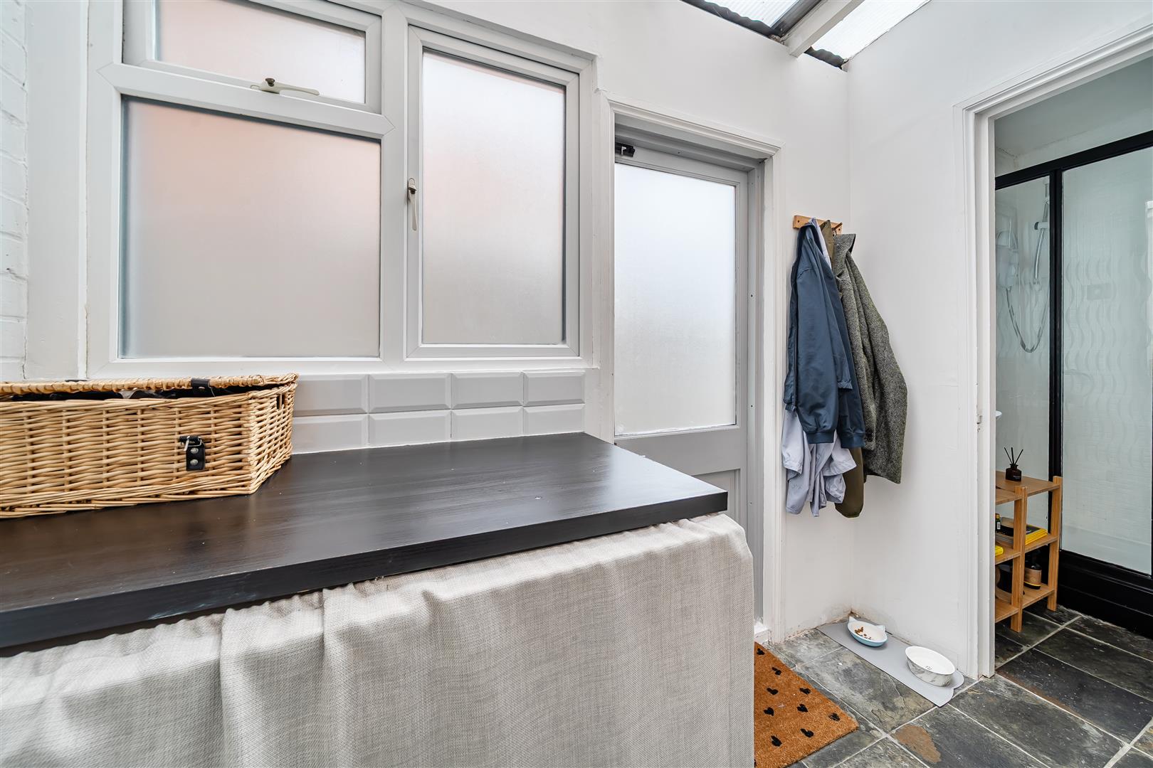 This attractive and well presented Victorian home is approached by a front door to the entrance hall with a stairs to the first floor, a door opens to the front aspect Living Room with a log burning stove and an attractive bay window. A wide archway separates the rear aspect Dining Room, and a door leads to the Kitchen, with a good range of cabinets and a range of integrated appliances, this opens to the glazed Garden Room with French doors to the garden, as well as access to a Utility Room and a downstairs shower room. Upstairs, two double bedrooms are served by a large bathroom with a modern white suite, and on the 2nd floor is a rear aspect bedroom overlooks the garden.