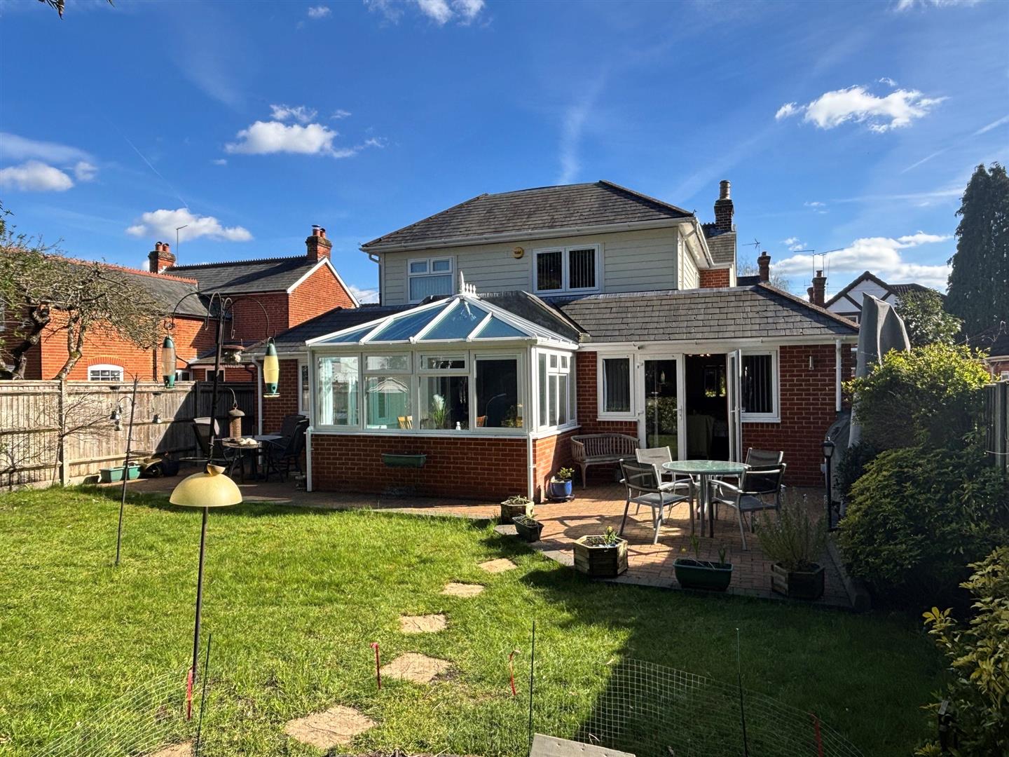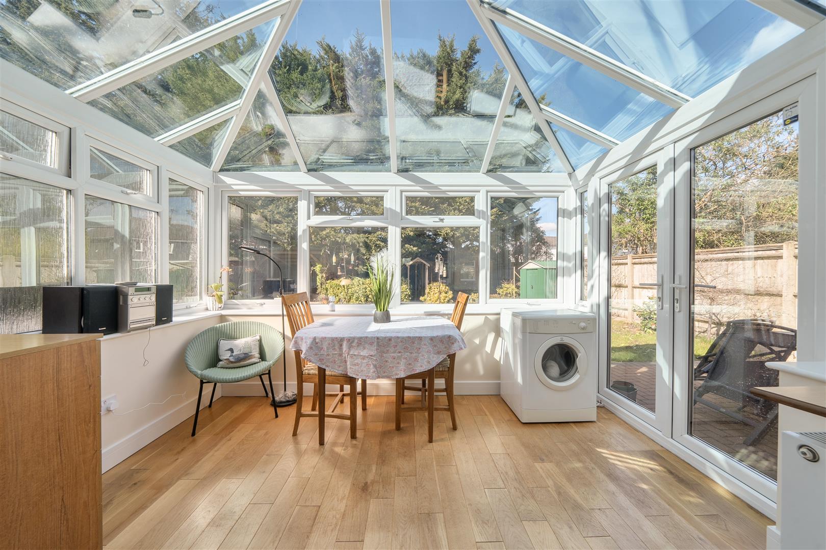 The property has dual driveways for two small cars leading to the two utility rooms. The rear garden has two patio areas leading to the level lawn enclosed by timber fencing. To the rear is a covered seating area with a ornamental pond and to the rear of the garden is a timber shed and a brick built workshop.