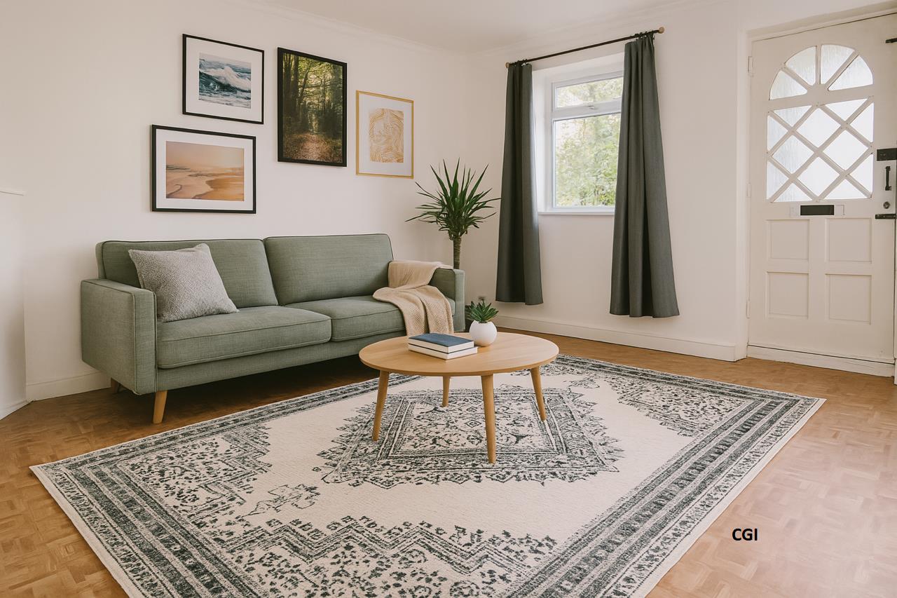This well balanced two bedroom home is approached by an entrance hall porch with a storage cupboard, a further door opens to a good sized living room and this leads to the kitchen, which is fitted with a range of shaker styled cabinets, with fitted appliances and appliance space. A door leads to the garden.  Upstairs, the landing with airing cupboard, leads to two bedrooms, both served by a white bathroom.  NB: The property is unfurnished and would benefit from a degree of updating and redecoration, to show the potential, several images are CGI's (computer generated images)