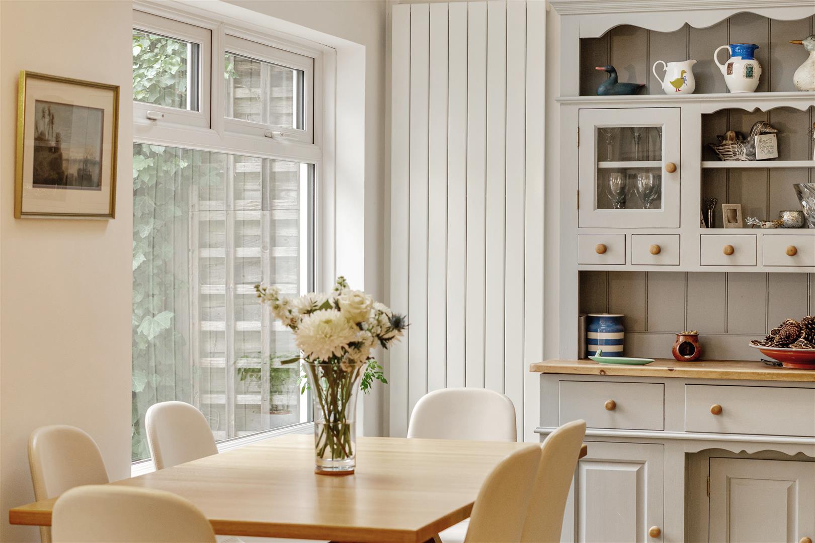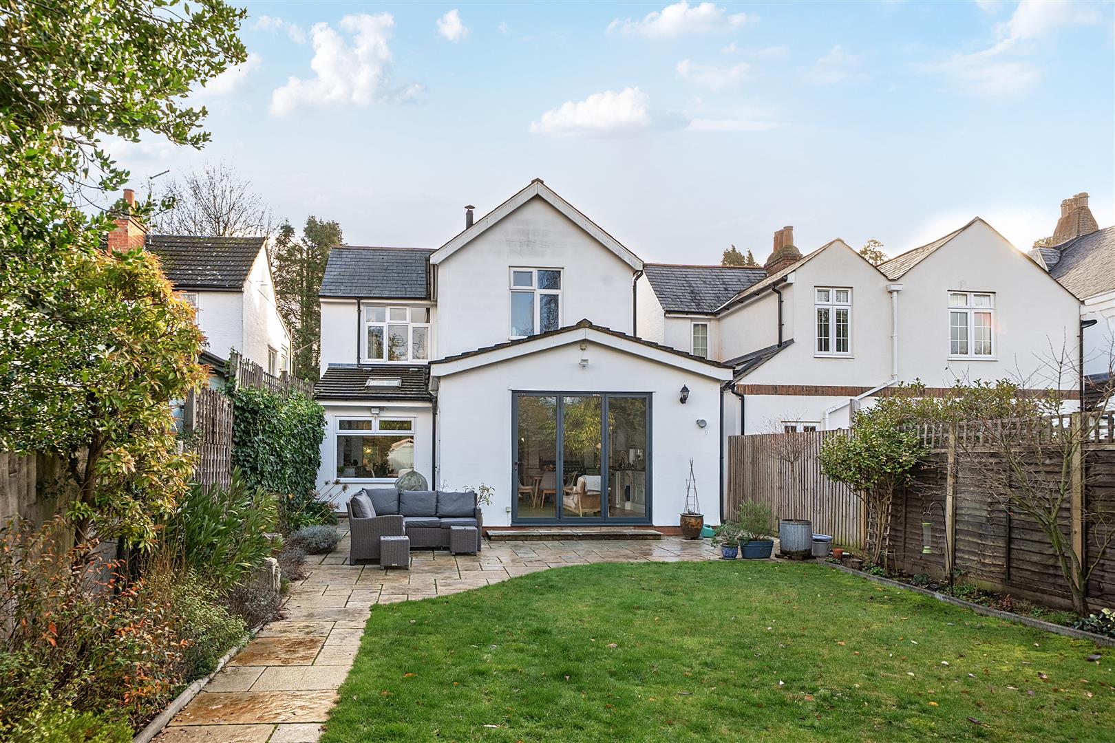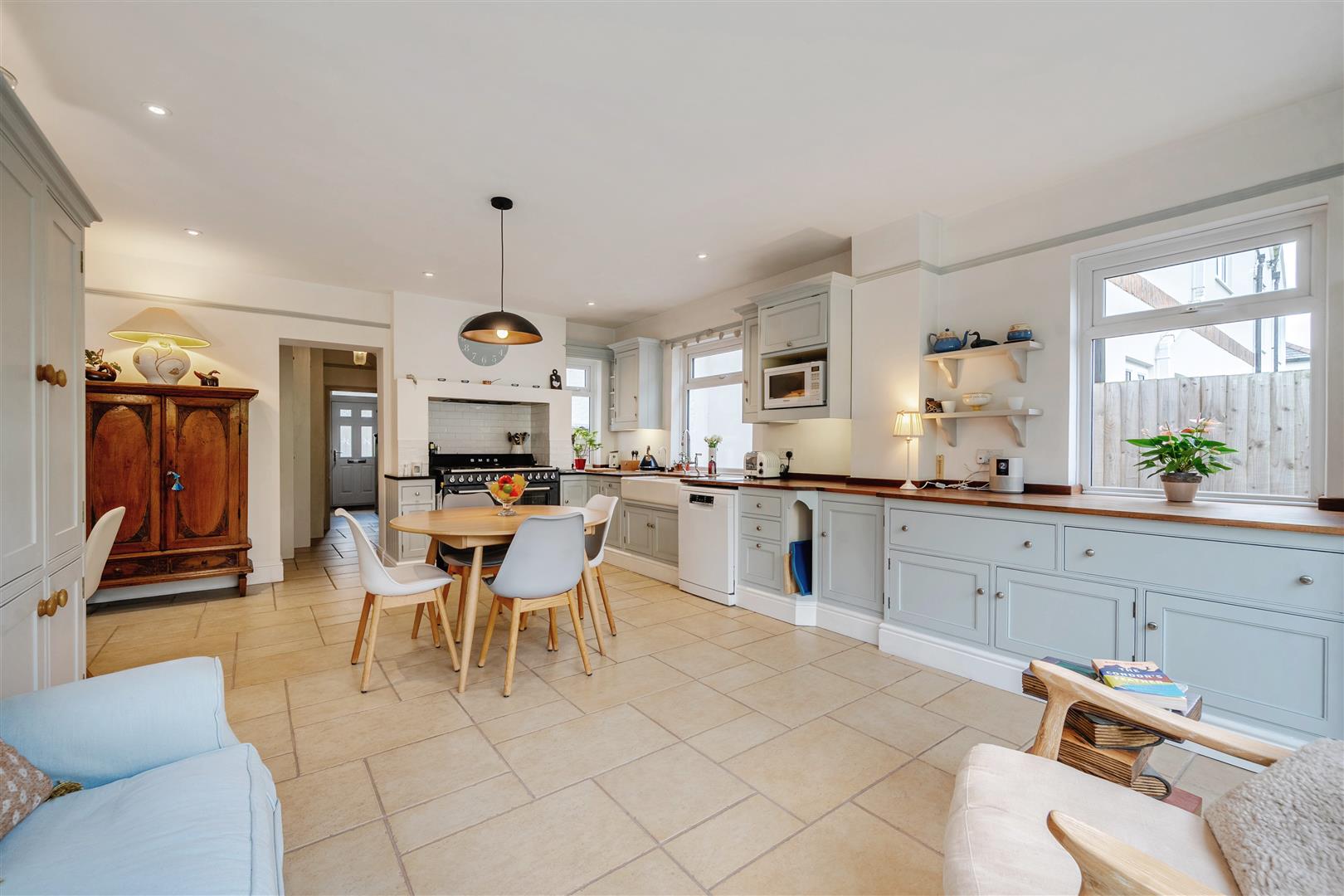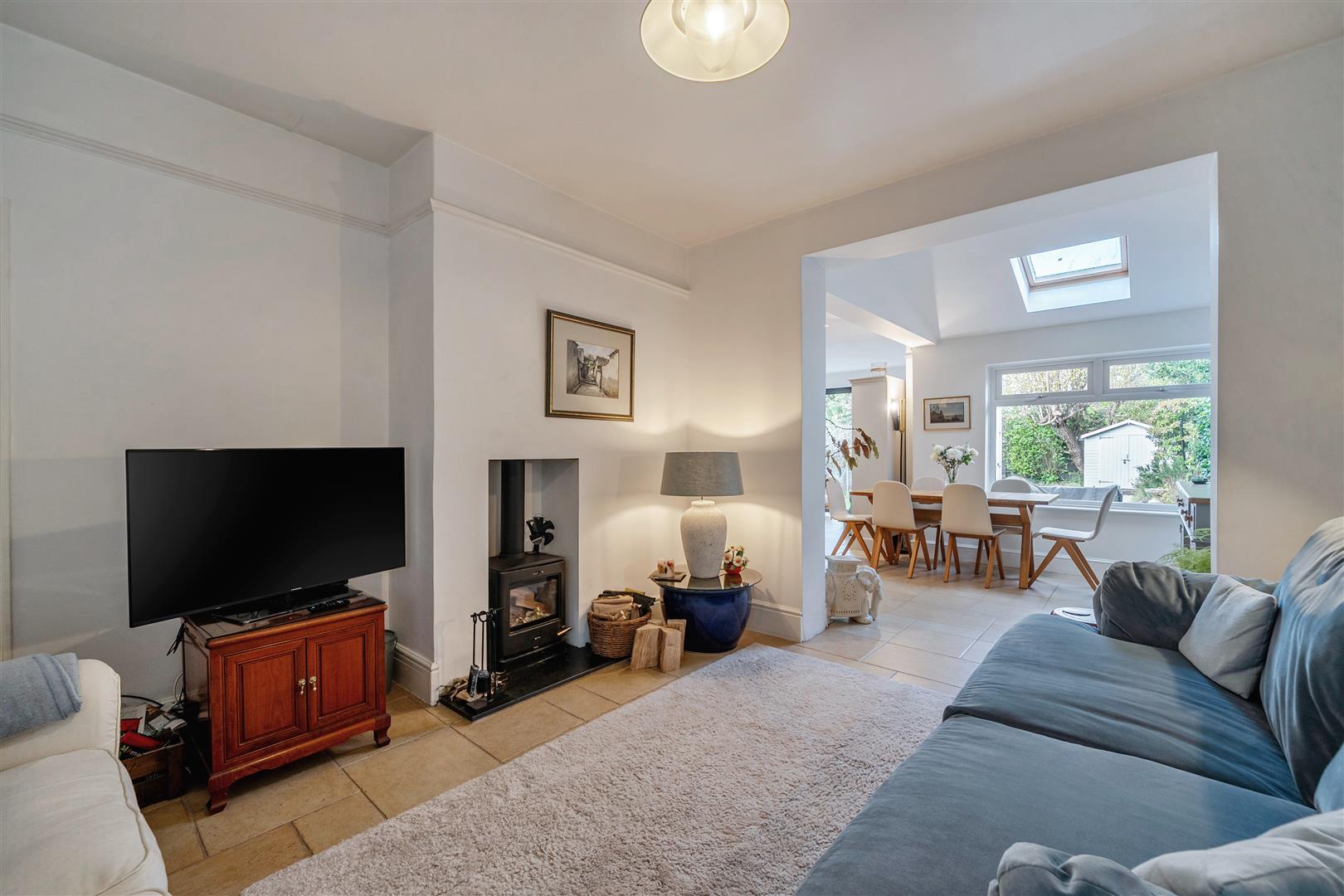 This extended and immaculately presented 1930's home has flexible living accommodation in excess of 1900 sq. feet. The front door opens to the hallway with a cloakroom and several storage cupboards. The front aspect Reception room has a feature open fireplace and a square bay window with fitted plantation blinds. The neighbouring Living Room with a Log Burning stove and an archway to the 3-zone kitchen/dining room/sitting room with bifold doors to the garden. The kitchen is well planned with bespoke hand painted cupboards and contrasting worksurfaces. Upstairs, the three double bedrooms are served by an recently refitted ensuite shower room and a modern family bathroom.