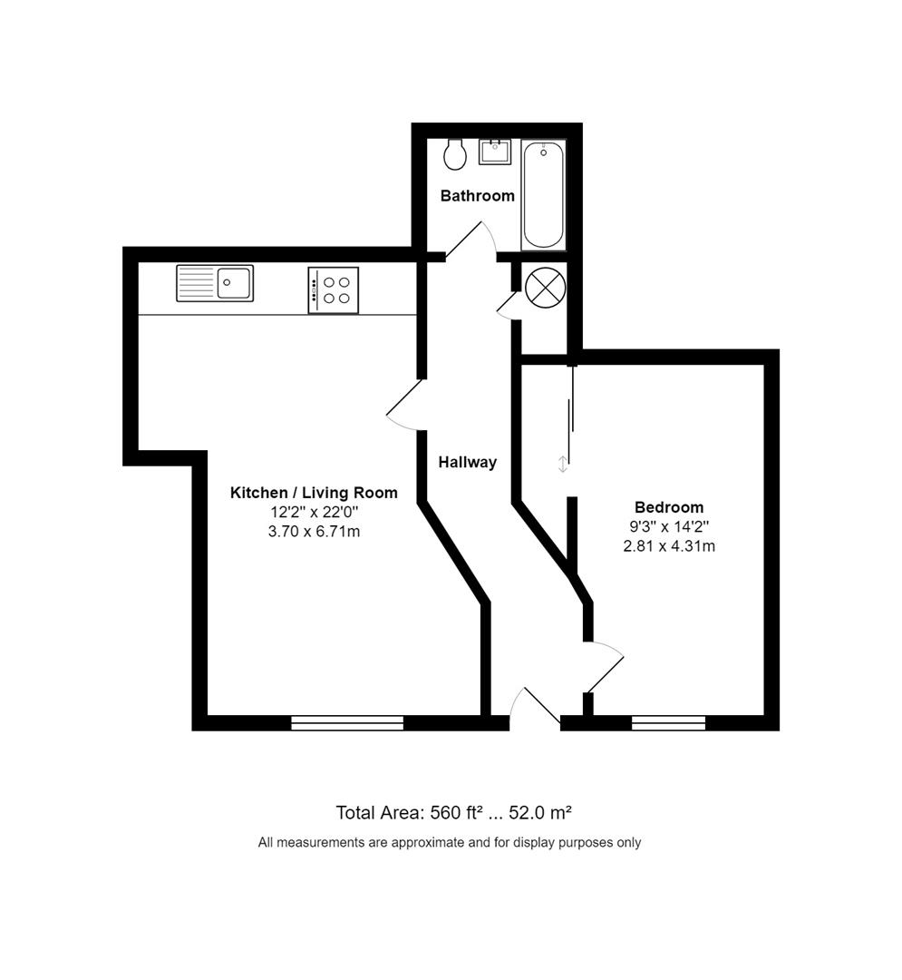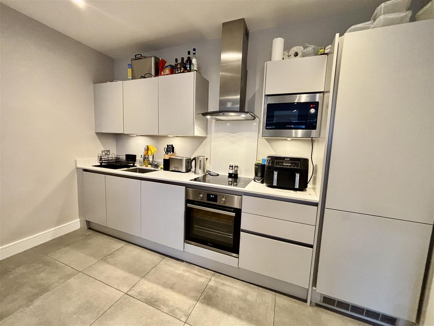 From the front door, this gives access to the entrance hall with storage cupboard. The open plan living room has high ceilings and is open plan to the kitchen, this has a good range of cabinets complimented by integrated appliances and quartz work surfaces. The bedroom has a fitted wardrobe and is served by a separate bathroom.