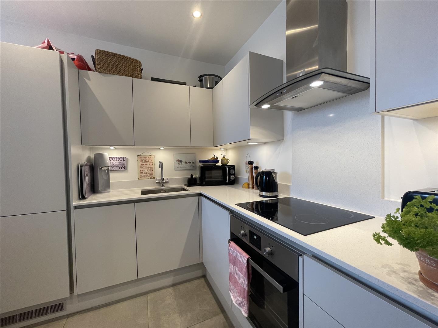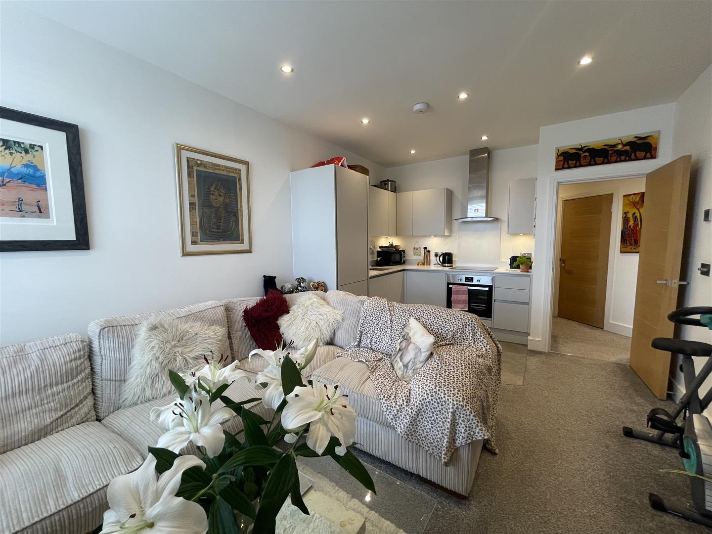 From the front door, this gives access to the entrance hall with storage cupboard and linen cupboards. The open plan living room has high ceilings and is open plan to the kitchen, this has a good range of cabinets complimented by integrated appliances and quartz worksurfaces. The bedroom has a built-in wardrobe and is served by a separate bathroom.