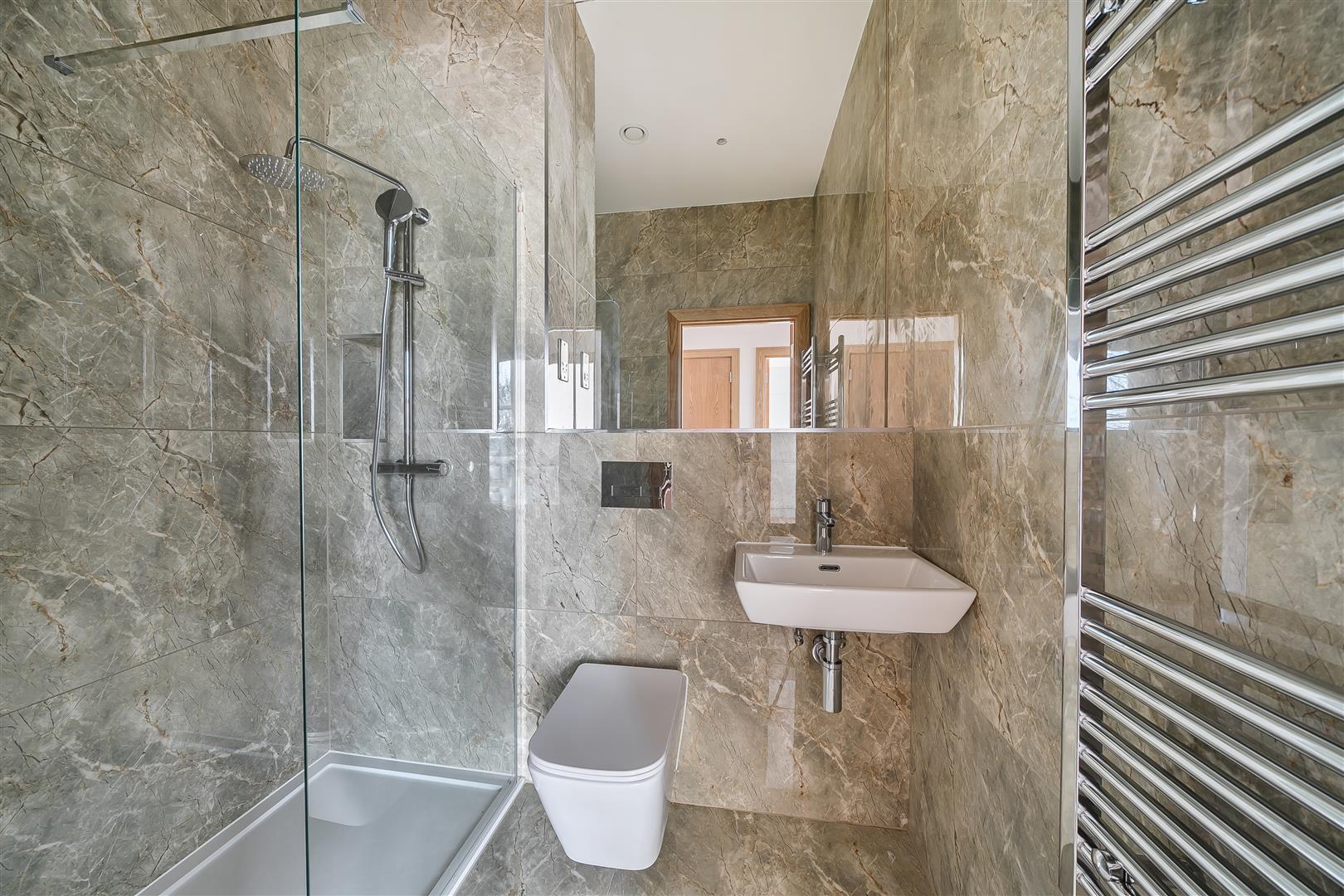 Each apartment has been thoughtfully designed to deliver stylish, contemporary living. The homes feature sleek handleless kitchens with quartz worktops and integrated Samsung appliances, while the beautifully finished bathrooms showcase full tiling and premium Grohe fittings. Interiors are enhanced with luxury LVT flooring, solid internal doors, brushed chrome switches and sockets, floor-to-ceiling curtains, and fitted wardrobes, creating a refined and modern living environment.
