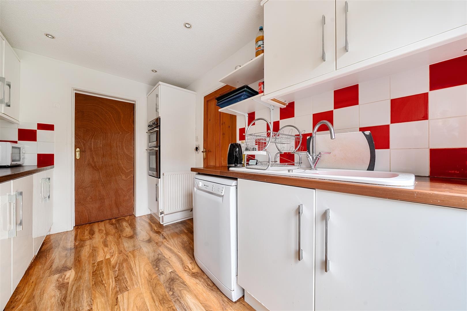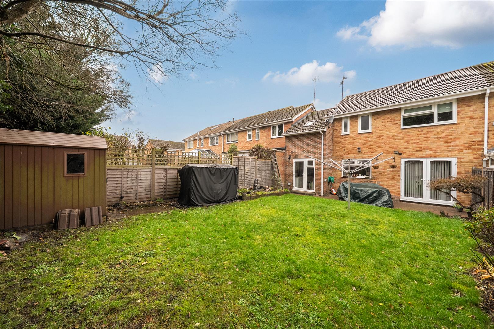 To the front of the property is an open-plan garden laid to lawn, with a driveway providing off-road parking and leading to the integral garage with a single up-and-over door. The rear garden offers a further expanse of lawn and is enclosed by close-board panelled fencing, complemented by established shrub borders.