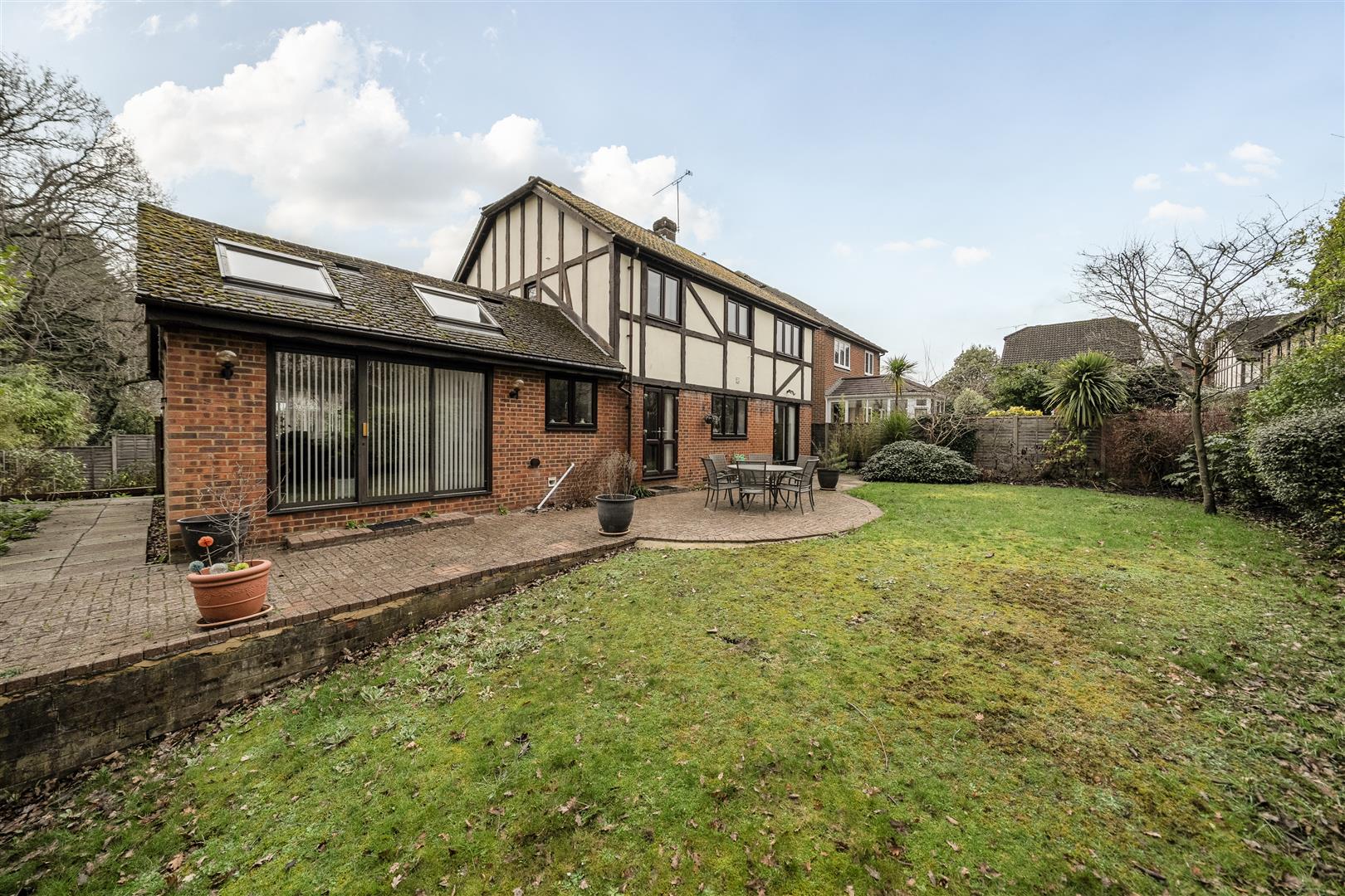 The property is approached by a driveway with parking from several cars and leads to the double detached garage. The wrap-around garden gives the flexibility for children play area or vegetable garden, and the garden has a full width patio that enjoys a south-westerly aspect and is principally laid to lawn with mature planting.