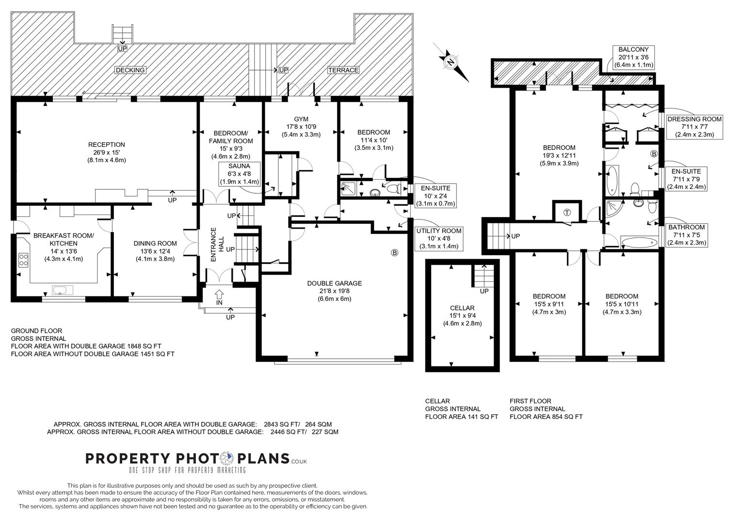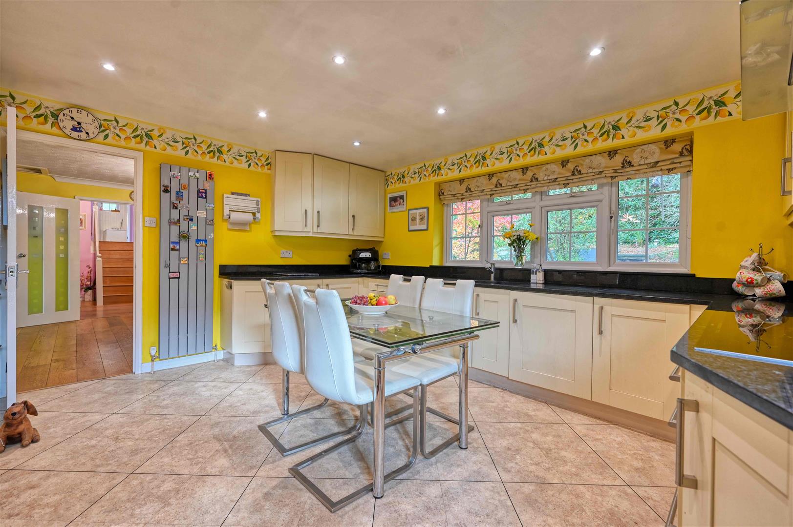 The 1970's architecturally designed home offers well balanced and flexible split-level accommodation. The spacious entrance hall with vaulted ceilings leads to the principal living accommodation, with the 26ft rear aspect living room enjoying a feature fireplace with log burner and patio doors opening to the south facing rear terrace, the adjacent dining room leads to the modern and well planned kitchen. In addition to the main living area on the ground floor, there is a multifunctional room, either a 5th bedroom, playroom or formal dining room with access to a cellar. Upstairs is the master bedroom with fitted wardrobes, a further dressing room, ensuite and a south facing balcony overlooking the garden. There are two further generous double bedrooms and a well appointed family bathroom. On the lower ground floor is the integral double garage and annexed accommodation comprising of a utility room, readily converted to a kitchenette, an ensuite shower room and two rooms for a studio/hobby room/multigenerational space or leisure space. It contains the sauna and has direct access around the side of the house. The suite also has double doors onto a terrace adjacent to the swimming pool.