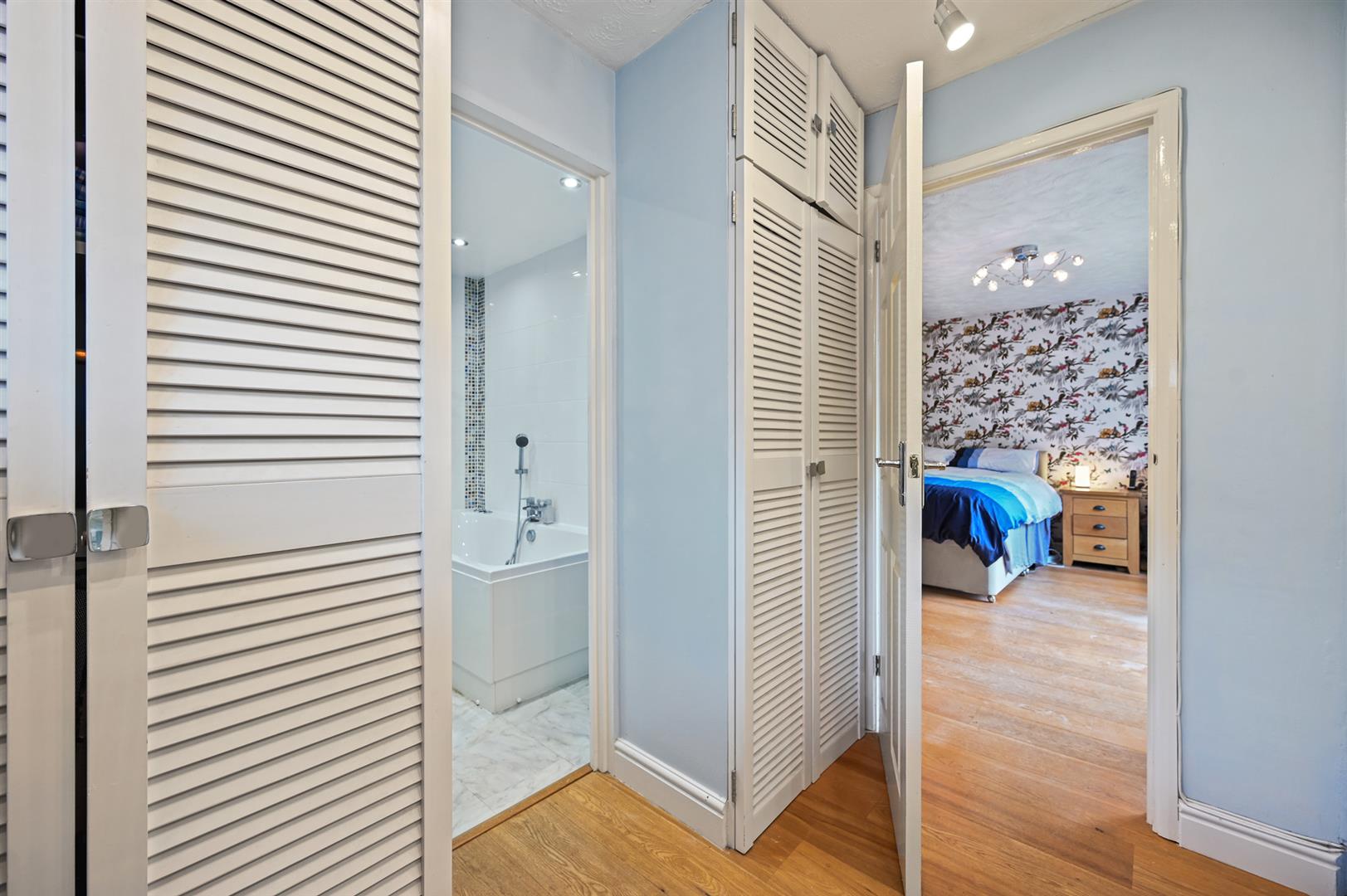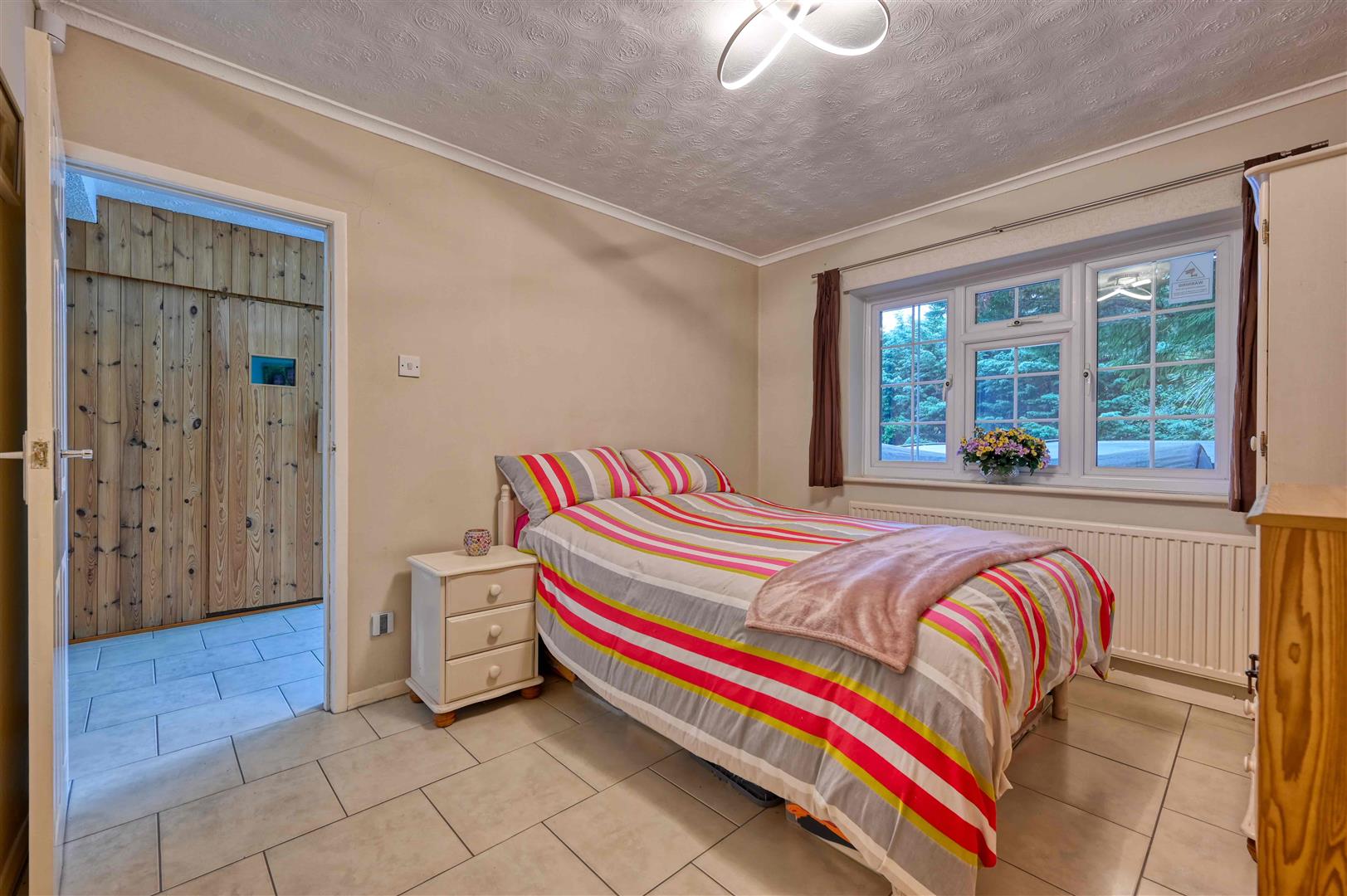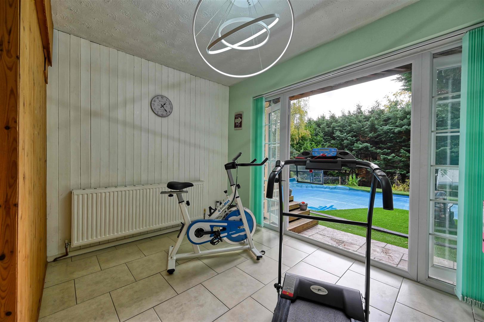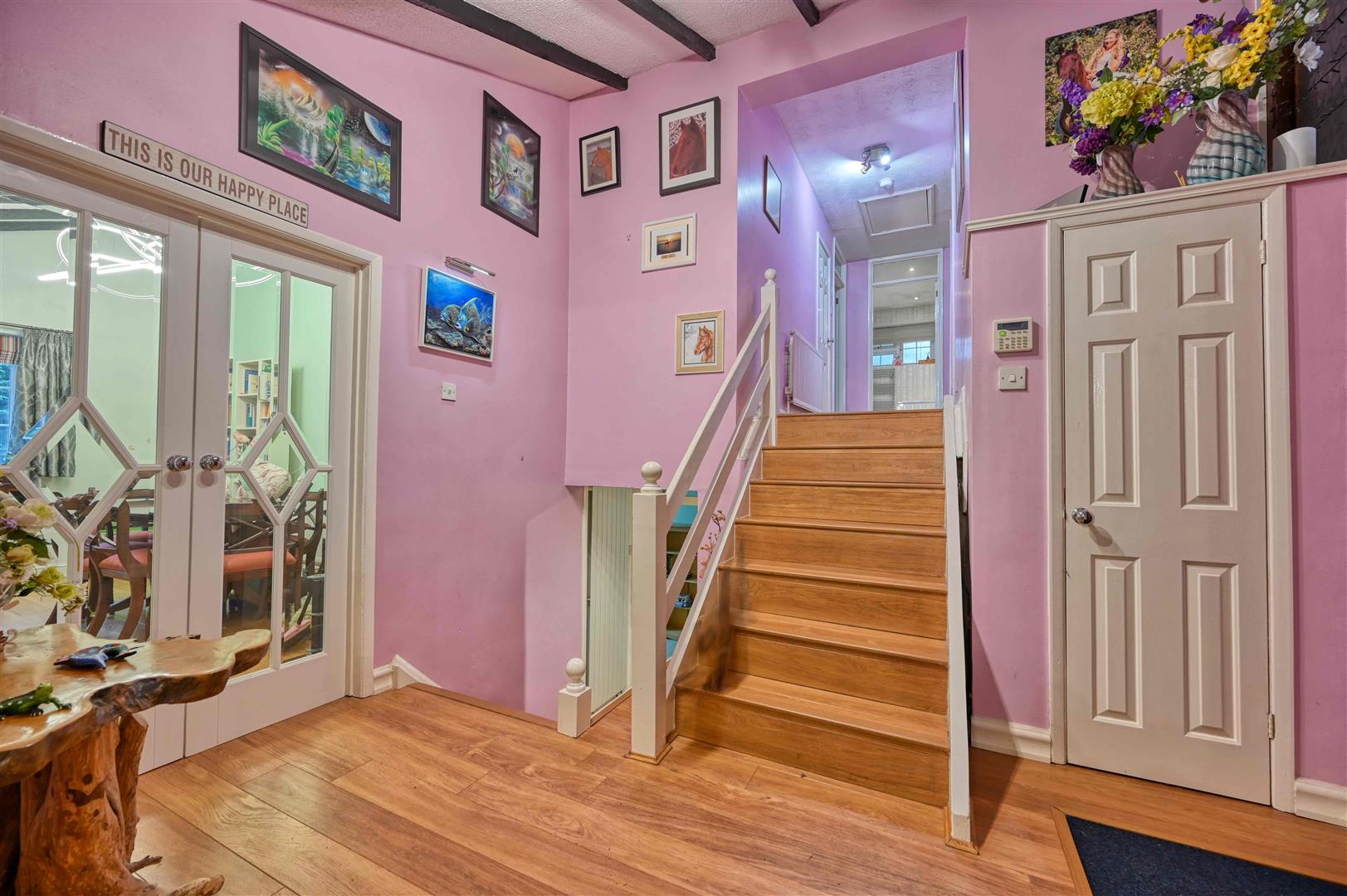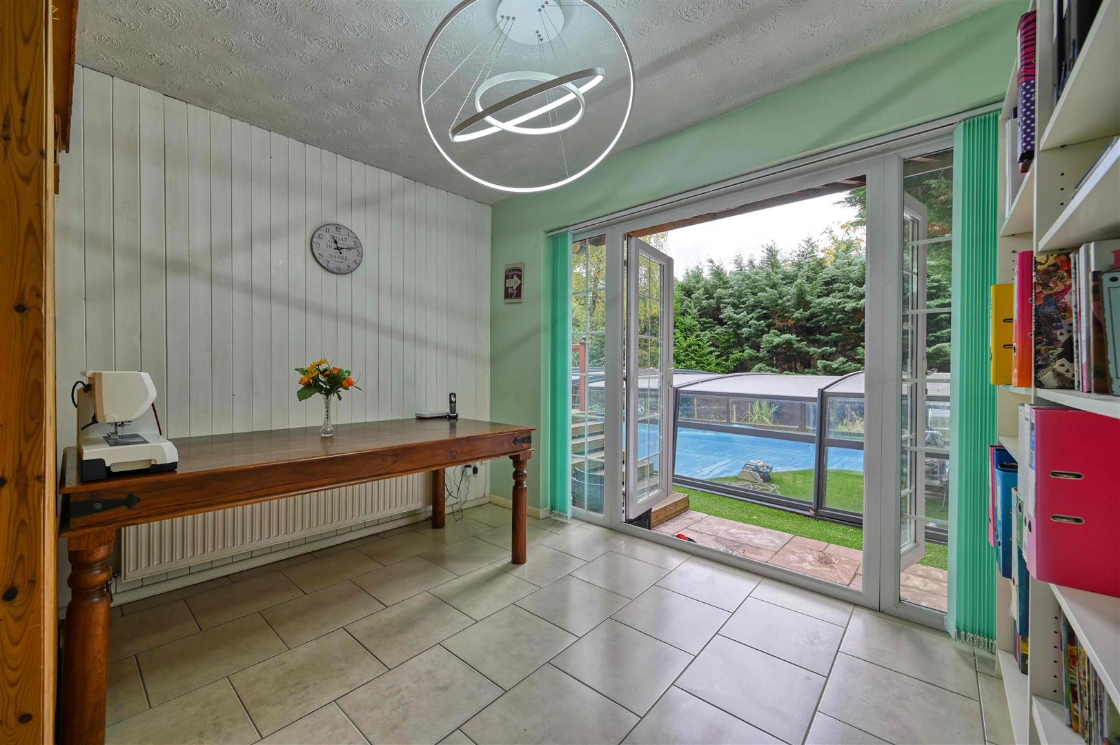 The overall plot extends to 0.29 of an acre and is approached by a driveway leading to the garage and bordered by an elevated garden visible from the kitchen and could be re-landscaped to create a formal garden. To the rear is a secluded south facing garden, with ample space for entertaining, as well as a feature garden with and a water feature and stream. The centre piece is the recently refurbished and covered swimming pool with a retractable cover, this allows all year round use. The majority of the garden is low maintenance with artificial lawn.