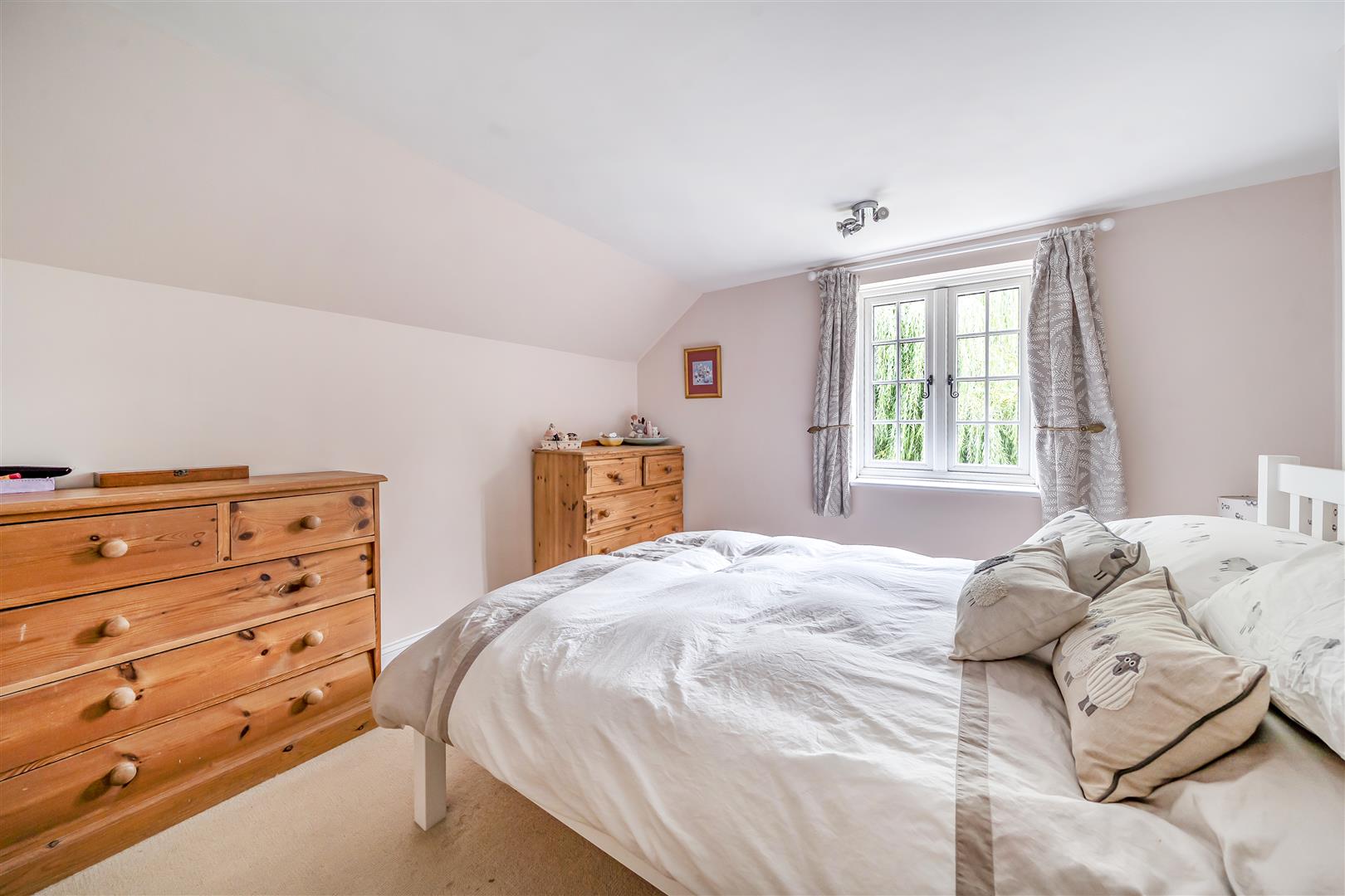 Upstairs, there are three well-proportioned bedrooms. Two doubles include the principal bedroom with built-in wardrobes, whilst the third makes a comfortable single bedroom. A modern family bathroom with a white suite serves all rooms, and a useful converted attic space offers scope for hobbies or additional storage.