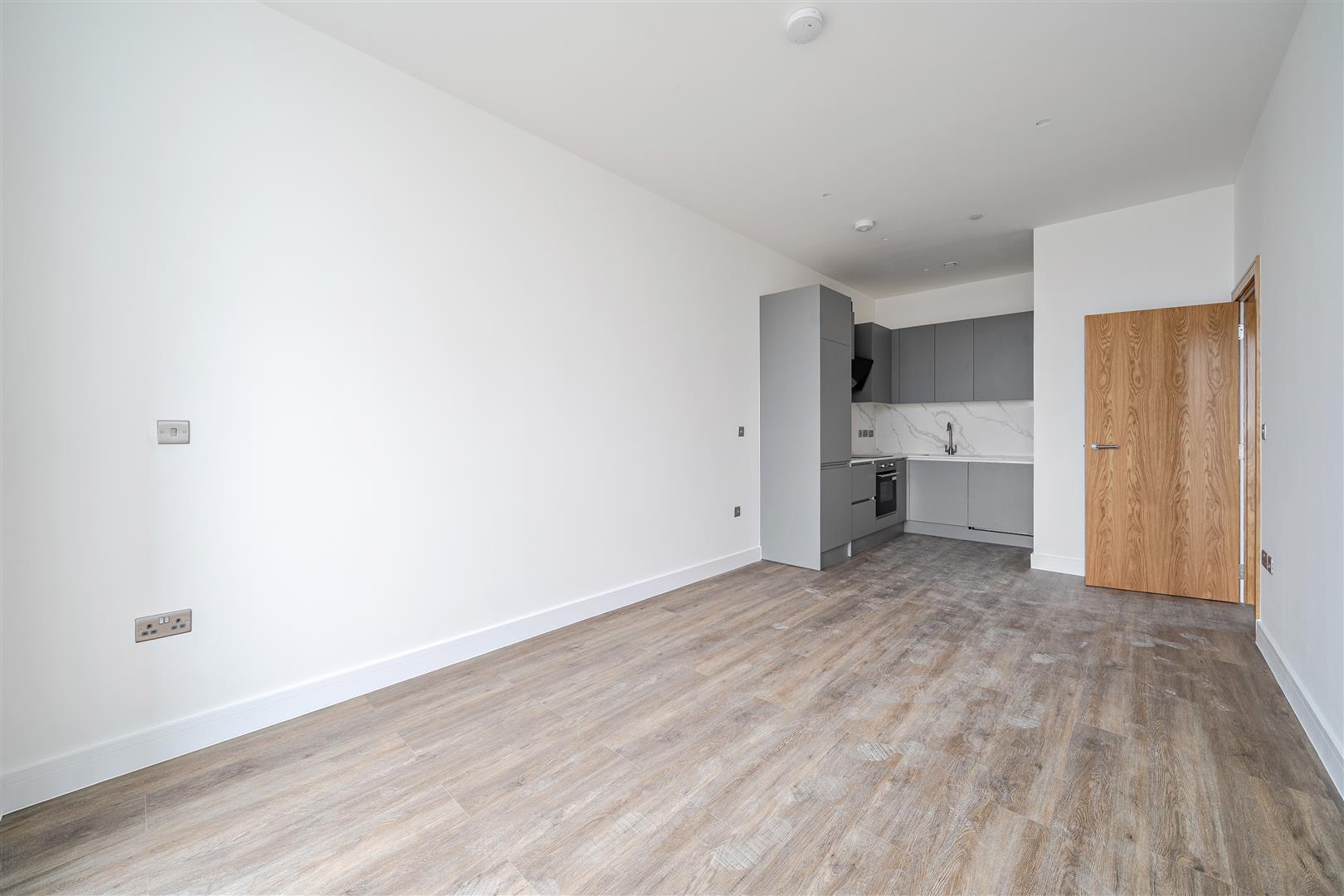 Each apartment has been thoughtfully designed with an emphasis on quality, comfort, and modern aesthetics. Kitchens are finished in an elegant grey tone with quartz worktops, white marble splashbacks, and fully integrated Samsung appliances, all supported by a five-year manufacturer’s warranty. Open-plan living areas are light and spacious, enhanced by electric heating and Mitsubishi Electric air filtration systems, providing superior comfort and air quality throughout.