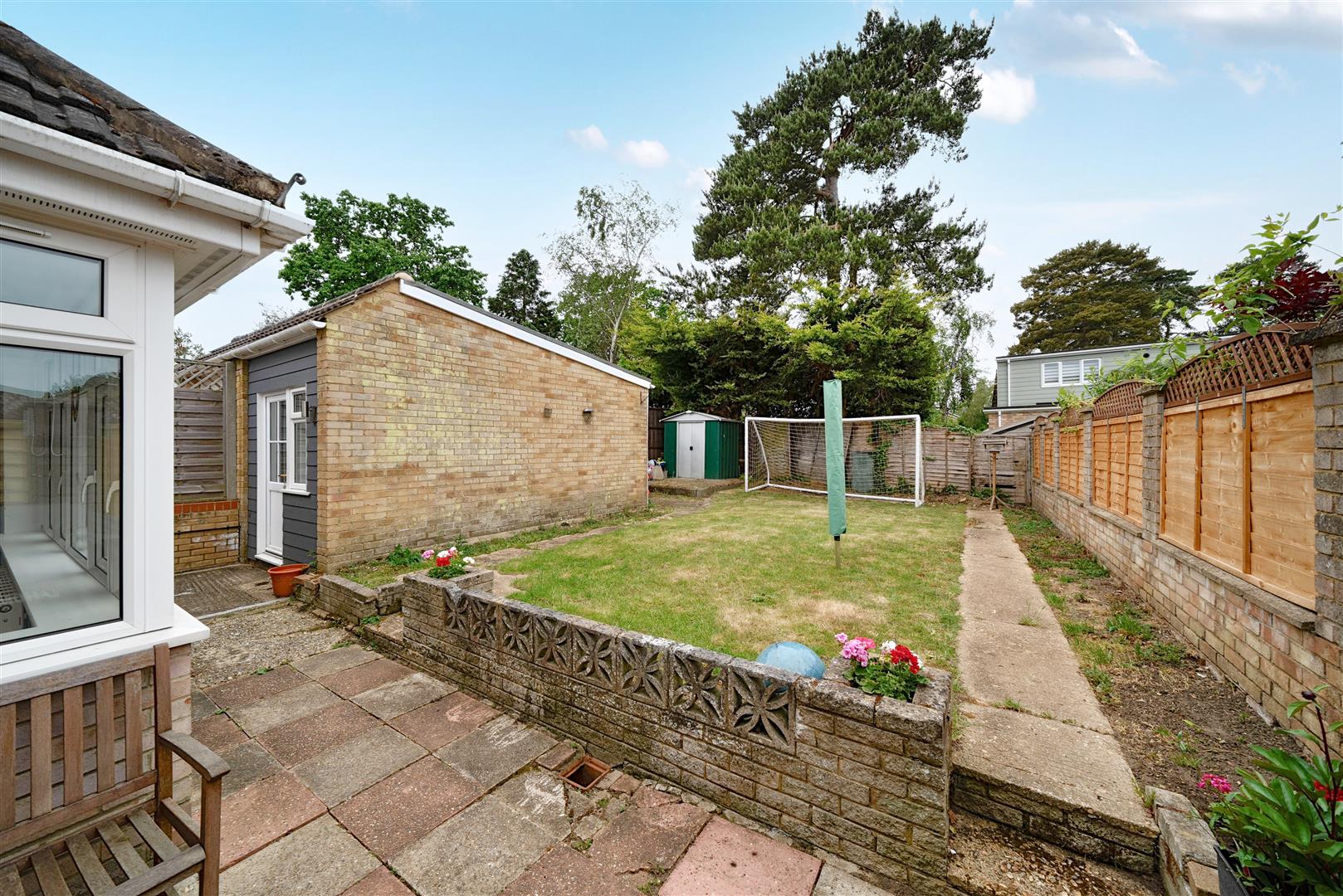At the rear, the garden features a large lawn, a patio area, and a spacious brick-built garden room that can be used as a home office or for storage. There is also gated side access. At the front, the property benefits from a driveway providing off-street parking for multiple vehicles.